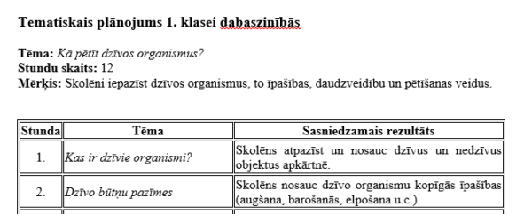 Tematiskais plāns dabaszinības 1 .klaseTematiskais plāns dabaszinības 1 .klase