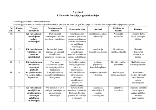 Tematiskais plāns: Daļveida funkcija, algebriskās daļas