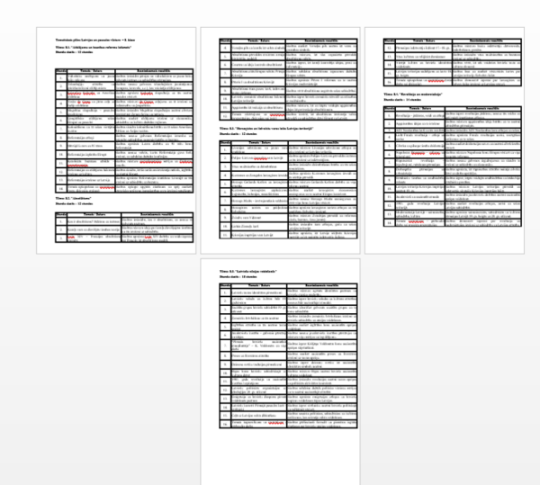 Lielā tēma ir sadalīta pēc SKOLA 2030 ieteicamā stundu skaita; ir pievienots katras stundas SR.