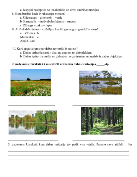 Tests dabaszinībās – dabas teritorijasTests dabaszinībās – dabas teritorijas
