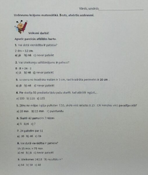 Tests matemātikā, atvērtie uzdevumi_3. klaseTests matemātikā, atvērtie uzdevumi_3. klase