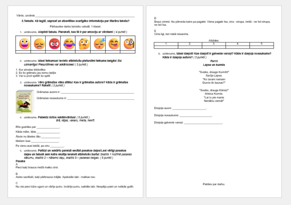 Piedāvāju temata noslēguma pārbaudes darbu ( TND ) latviešu valodā 1.klasei par tēmu – Kā iegūt, saprast un atcerēties svarīgāko informāciju par literāru tekstu?