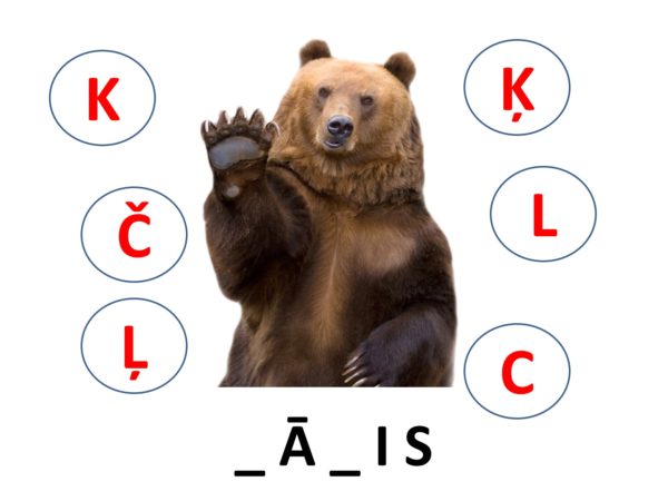 Ievieto trūkstošo burtu un izlasi doto vārdu.