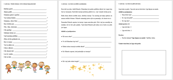 Uzdevumi teksta izpratnei un valodas attīstīšanai