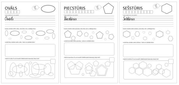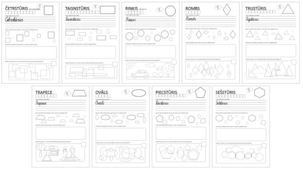 Darba lapas ar uzdevumiem figūru apguvei un nostiprināšanai. 9 lapas.