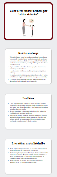 Vai ir vērts maksāt bērnam par labām atzīmēm? (prezentācija) Darba apjoms: 10 slaidi.
