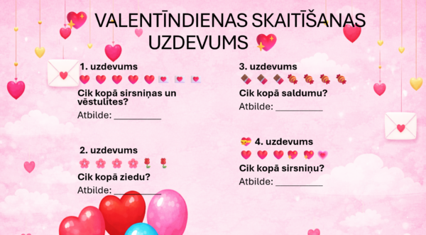 Valentīndiena – matemātikas uzdevumi. Saskaitīšana.
