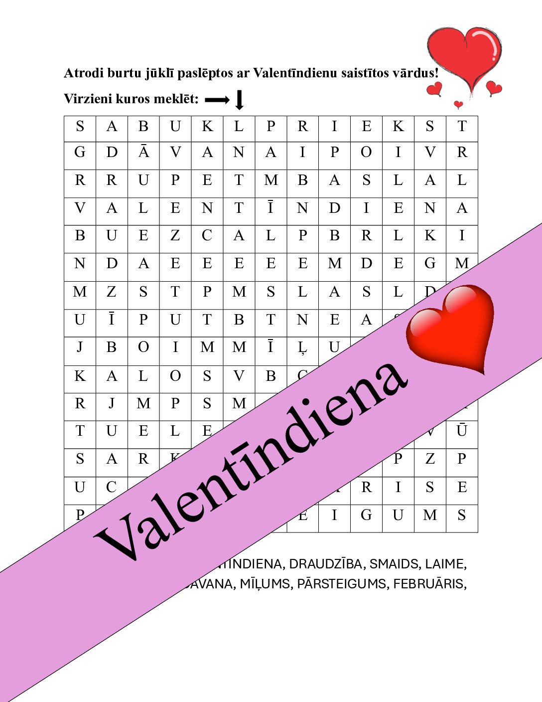 Valentīndienas burtu jūklis ir spēle, kurā tiek iekļauti dažādi ar mīlestību, draudzību un šo svētku noskaņu saistīti vārdi. Tā ir izklaidējoša un radoša aktivitāte bērniem. Jūklī ir sajaukti burti, un uzdevums ir atrast slēptos Valentīndienas vārdus, piemēram, mīlestība, sirds, prieks, ziedi un daudzi citi.