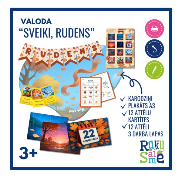 Valodas materiāls “Sveiki, rudens!” paredzēts pirmsskolas bērniem no 3 gadu vecuma. Tas veidots, lai caur vizuāli pievilcīgiem materiāliem palīdzētu bērniem iepazīt rudens norises dabā un bagātināt vārdu krājumu.