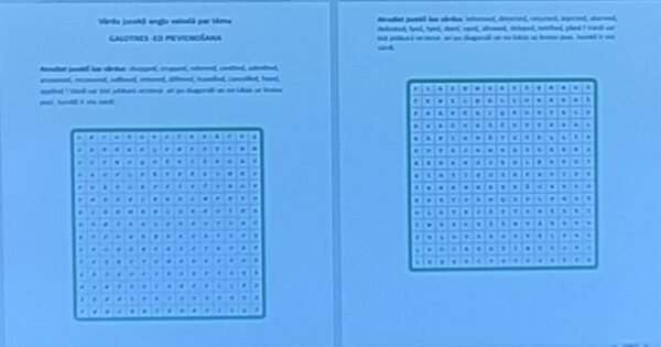 3 vārdu jucekļi pa 14 vārdiem katrā ar minēšanas instrukciju skolēnam. Var izmantot zināšanu nostiprināšanai pēc mana konspekta ”Kā pareizi pievienot galotnes -ed, -ing, -er angļu valodā”.