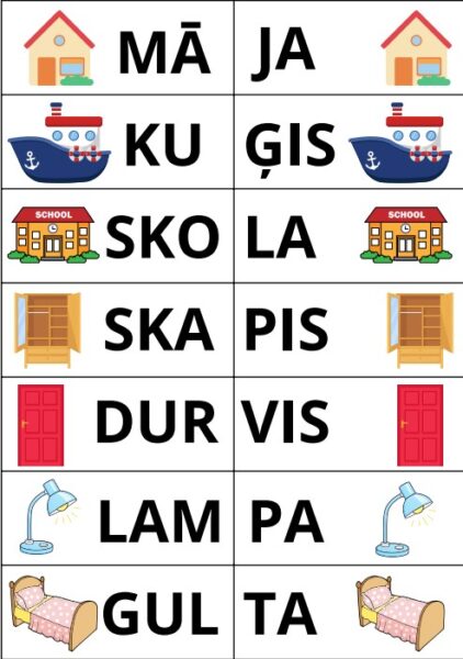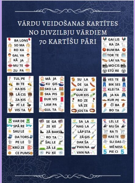 Vārdu veidošana- divzilbju vārdi 70 pāri kartīšu