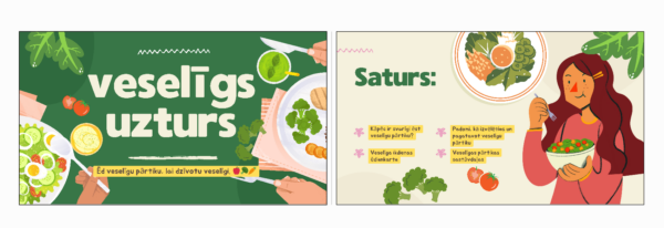 Šī prezentācija iepazīstina ar veselīgas pārtikas nozīmi un tās galvenajām sastāvdaļām. Tajā apskatīti veselīgas ēdienkartes piemēri, padomi, kā izvēlēties un pagatavot uzturvielām bagātu pārtiku, kā arī ieteikumi par uztura etiķetēm, krāsainiem augļiem un dārzeņiem, veselīgiem gatavošanas veidiem un pareizu šķidruma uzņemšanu. Mērķis ir sniegt praktiskus ieteikumus ikdienas ēdienkartes sabalansēšanai un veselīga dzīvesveida veicināšanai.