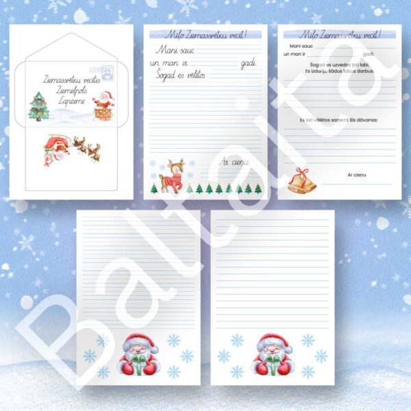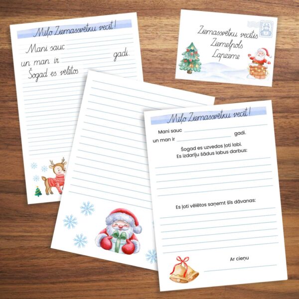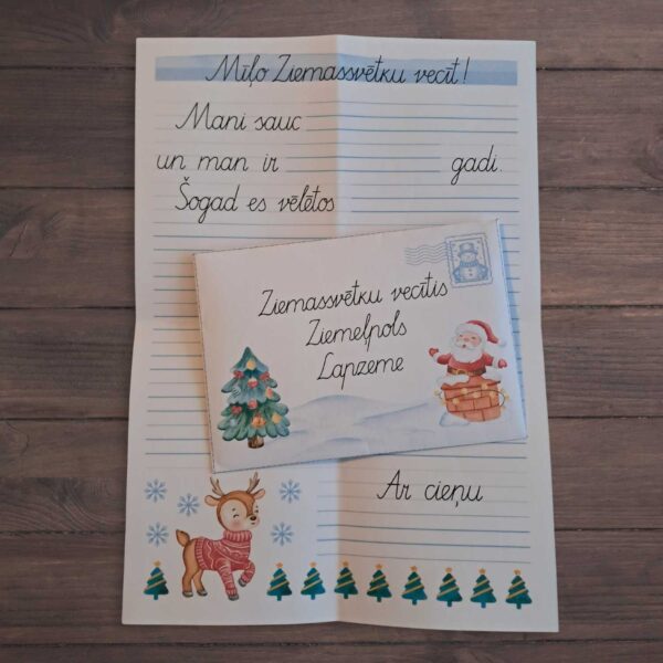 Vēstules paraugi, šabloni un aploksne vēstulei Ziemassvētku vecītim.