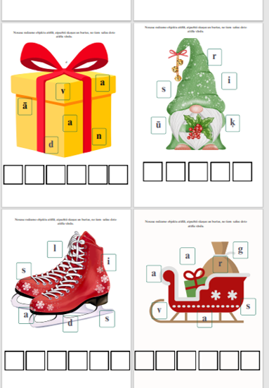 Nosauc redzamo objektu attēlā, atpazīsti skaņas un burtus, no tiem saliec doto