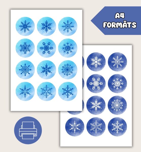 Izprintē vai atver digitāli sniegpārsliņu kartītes un ēnu kartītes.
