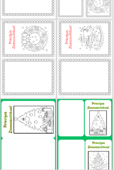Priecīgus Ziemassvētkus! Izkrāso savu izvēlēto  kartiņu un ielūdz vecākus uz Ziemassvētku pasākumu vai apsveic savus draugus Ziemassvētkos. ( divi formāti)