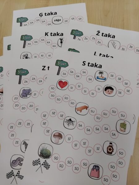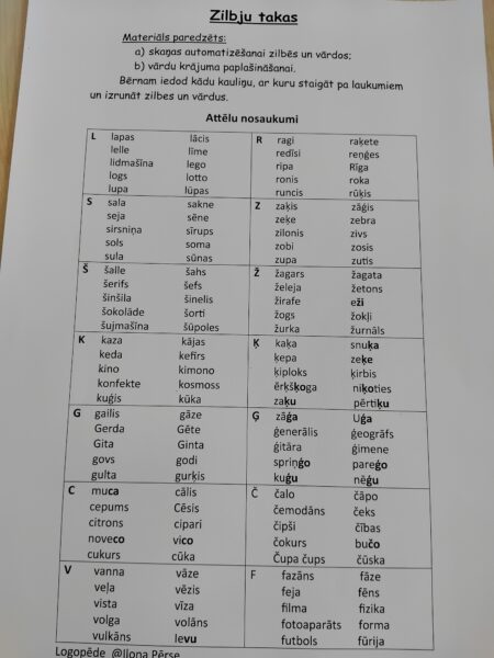 Bērns ar kādu priekšmetu/kauliņu staigā pa laukumiem un nosauc tur rakstīto vai attēloto.