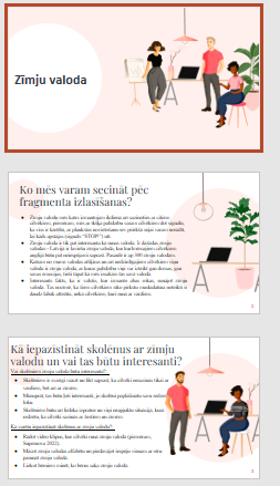 zīmju valoda (prezentācija). Attēlā dots tikai fragments no visas prezentācijas. Kopējais prezentācijas apjoms ir 15 slaidi.