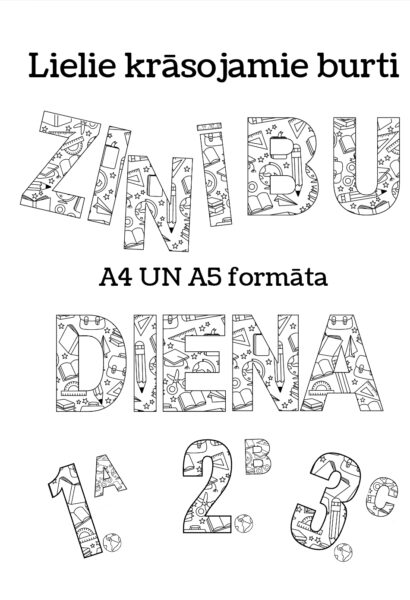 Materiālā ietilps A4 un A5 formāta burti, no kuriem var izveidot uzrakstu ZINĪBU DIENA