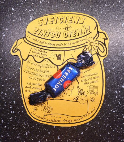 Šis sirsnīgais materiāls ir veidots kā mīļš pārsteigums skolēniem Zinību dienā – MEDUS BURCIŅA ar saldu vēlējumu, kas simbolizē zinātkāri, spēku un jaunu sākumu. Medus burciņu var izdrukāt, izgriezt, ielaminēt un izmantot kopā ar saldumiņu, zīmuli vai kā dekoratīvu elementu dāvanai, to piestiprinot pie izvēlētā pārsteiguma.
