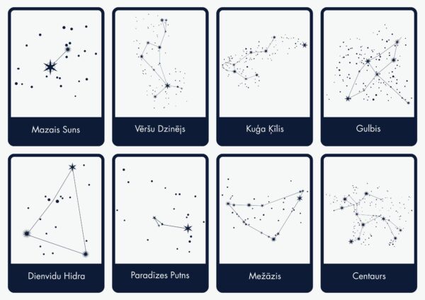 PDF fails ar zvaigznāju attēliem un to nosaukumiem, atgādne par zvaigznājiem,  PDF fails ar 2 darba lapām, powerpoint prezentācija par zvaigznājiem